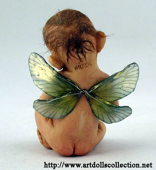 The doll is placed in a hand-made egg (Fimo Miniature). The egg is adorned with 7 flowers.